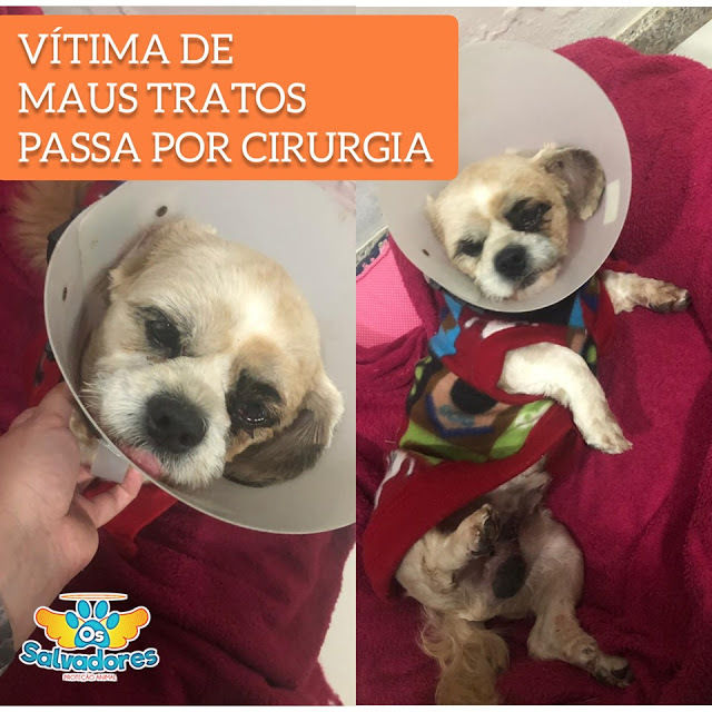 Cão vítima de maus tratos passa por cirurgia paga pela ONG OS SALVADORES