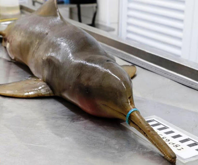 Segundo o veterinário responsável do instituto, Rodrigo Valle, essa espécie de golfinho corre risco de extinção. Segundo ele, o animal estava visivelmente magro, o que indica que ele não conseguia se alimentar há algum tempo, em razão do lacre em forma de argola preso ao rostro (estrutura que se assemelha a um bico).