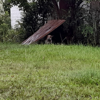 Os tutores foram orientados de que deixar o animal sem abrigo adequado é CRIME e solicitamos que providenciassem uma casinha o mais breve possível! O pátio da residência era aberto, então os aconselhamos a pelo menos por um "fio vai e vem" ou um canil.